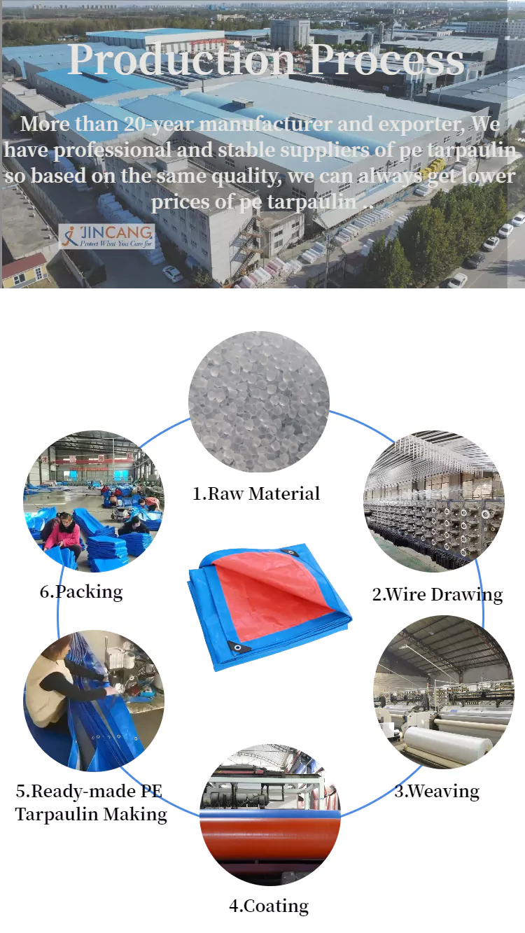 Jincang on yksi ammattimaisista PE-peiterullien valmistajista Kiinassa, 90 GSM Strip PE -peiterulla on pakkaus rullalta. Leveys on yleensä 1,83 m, 2 m, 4 m, 5 m, 6 m. Pituus on yleensä 63 m, 91, 100 m 200 m jne. Ja voimme myös muokata tarpeidesi mukaan. Sitä käytetään laajasti ulkona suojaamiseen, joka kattaa tavarat, rakennustyömaat, maatalouden tarkoituksiin ja väliaikaiset suojat.