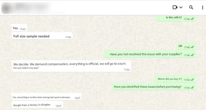 Saimme hiljattain tietää, että asiakas kohtasi vakavia ongelmia kilpailijan pressutilauksen kanssa. Heitä houkutteli alhainen hinta, ja tehtaalla kesti lopulta kaksi kuukautta tuotannon loppuun saattamiseksi. Toimituksen yhteydessä he huomasivat, että tuote oli loppunut varastosta, eikä se ollut alunperin sovitussa koossa. Asiakas harkitsee parhaillaan oikeustoimia. Alla on kopio viestinnästäni tämän asiakkaan kanssa.